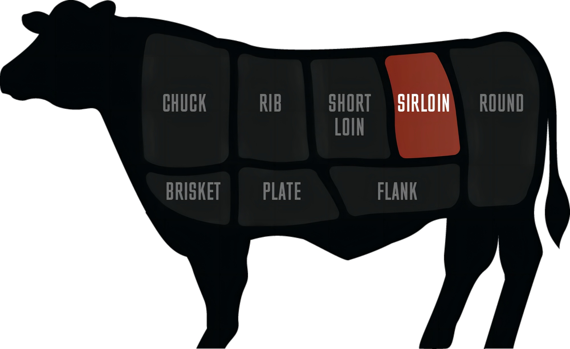 Located behind the Short Loin, the Sirloin is divided into two distinct halves, Top Sirloin and Bottom Sirloin. The Top Sirloin Butt offers a rich, lean steak perfect for grilling, while the Bottom Sirloin Butt provides the Tri-Tip and Sirloin Flap steak.